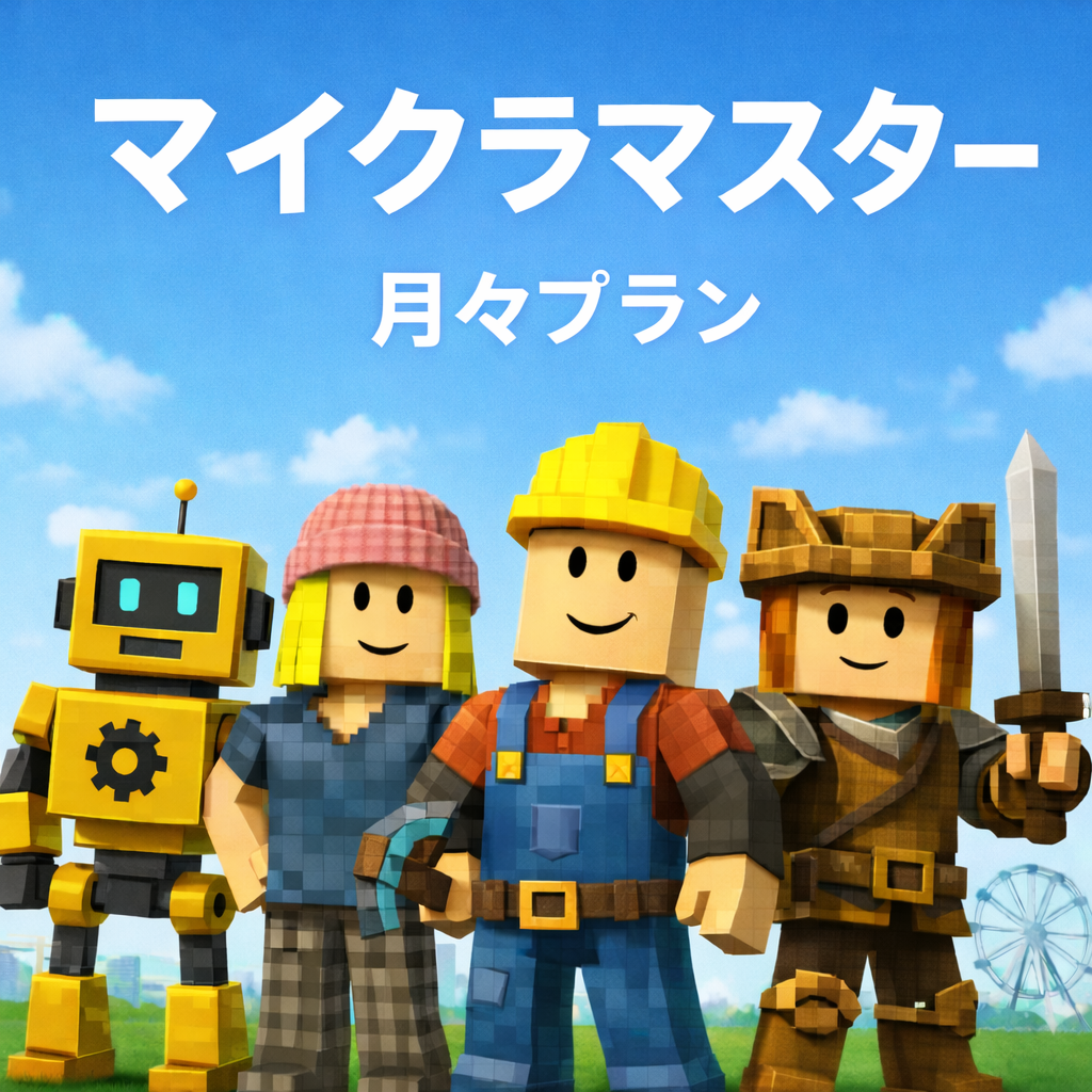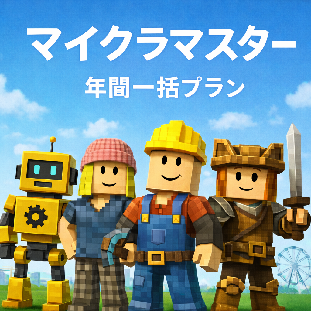 Roblox入門:24コマ Roblox初級:24コマ Roblox中級:24コマ(製作済み。提携教室所属で受講可能) Roblox上級:24コマ(企画設計中) |
